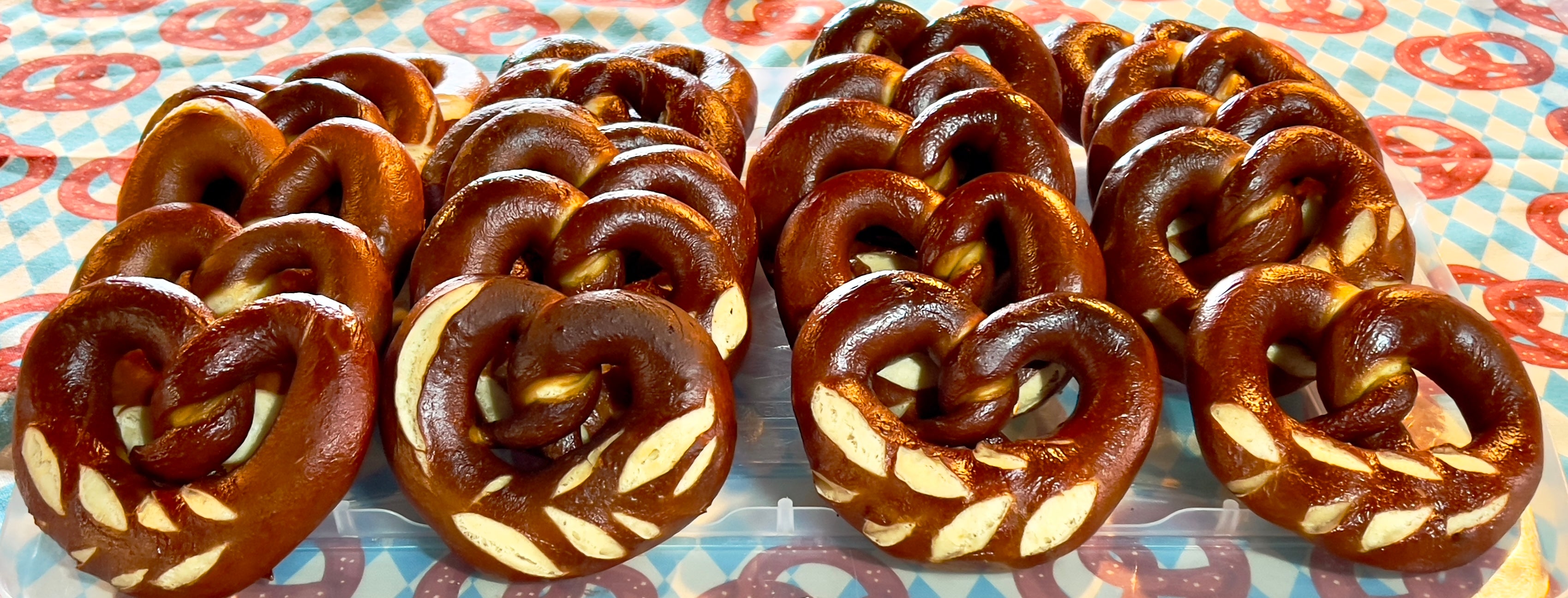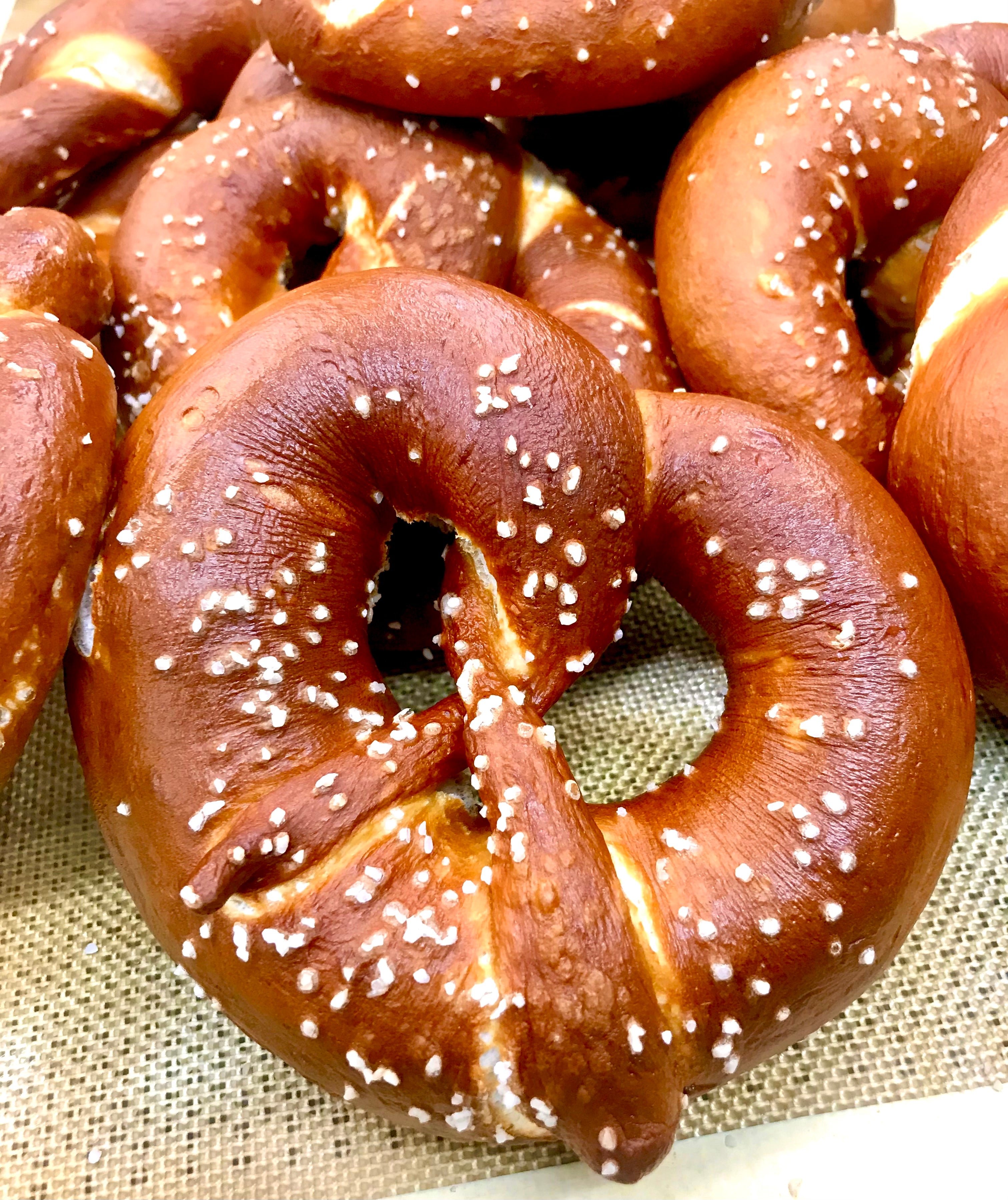 Our pretzels are baked fresh daily, hand rolled, hand twisted and hand dipped in small batches using centuries old, European artisanal techniques.