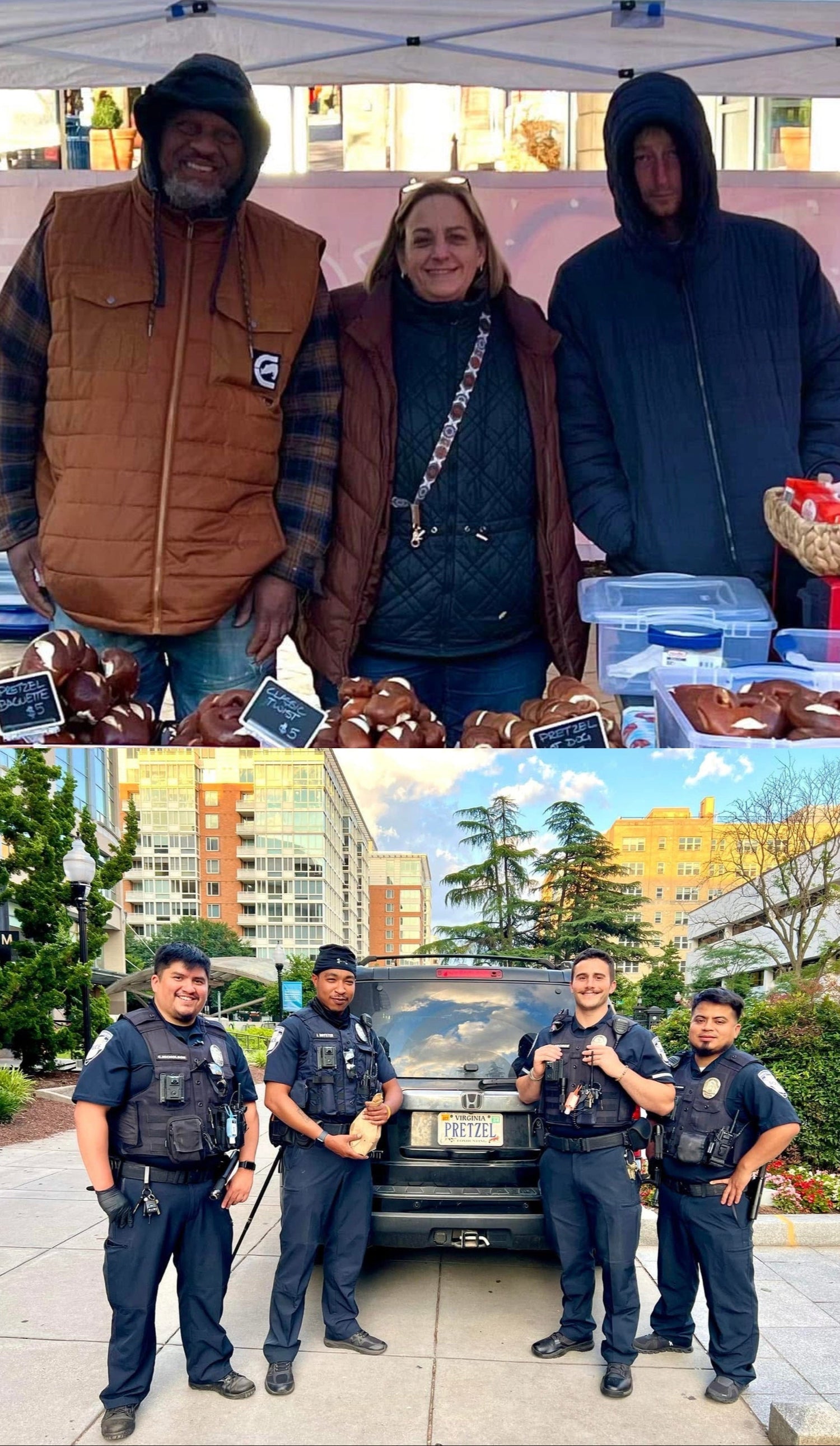 We currently employ several unhoused individuals in the Greater Washington D.C. region to help at markets and events. We feed dozens of people facing food insecurity weekly in the neighborhoods where we sell our pretzels. Pretzel sales fund food distribution, tents, sleeping bags, phones, backpacks and other supplies to those in need in Washington D.C., Maryland and Virginia. We work with local food kitchens and would love to get involved with more. We have a team of friends who have asked to help in our initiiatives called The Pretzel Angels.