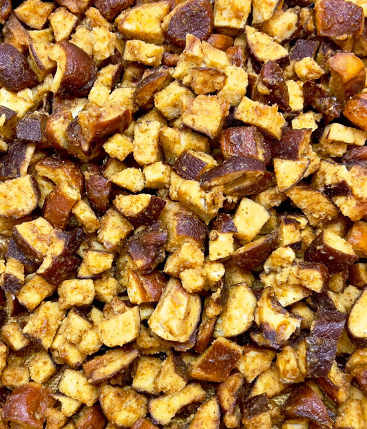 All of our gourmet, soft pretzels are made with a generations-old, family recipe from the Tyrolean alps. We only use all-natural ingredients: a proprietary blend of unbleached and non GMO flours (some of it locally milled), diastatic malt, butter (locally sourced or made in house), yeast, salt and water. That's it! We DO NOT include sugar or eggs/egg wash in our pretzels. Non-dairy/vegan options are available, switching out the butter for vegetable oil.