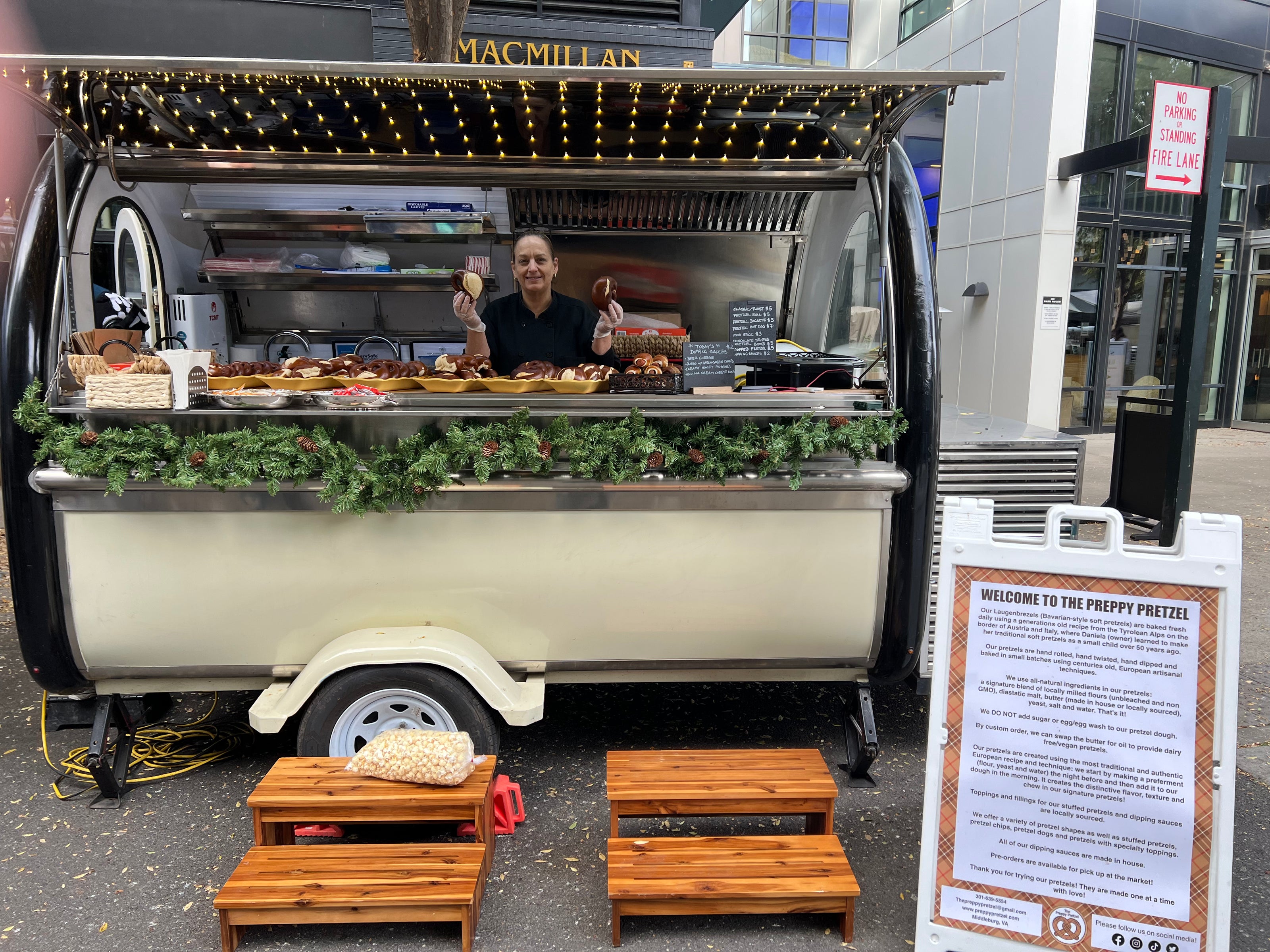 Daniela has been perfecting her special pretzels ever since she learned to make them as a kid, sharing them with family and friends both here and abroad. They became an immediate hit with her bakery clients as well. In 2022, she branded them as The Preppy Pretzel and started offering staffed pretzel bars at weddings and corporate/private events. In 2024, Daniela decided to focus exclusively on her popular pretzels, showcasing them at farmers markets, college campuses, military bases and festivals and adding our extremely popular Preppy Pretzel Buggy to our catering/pretzel bar options.