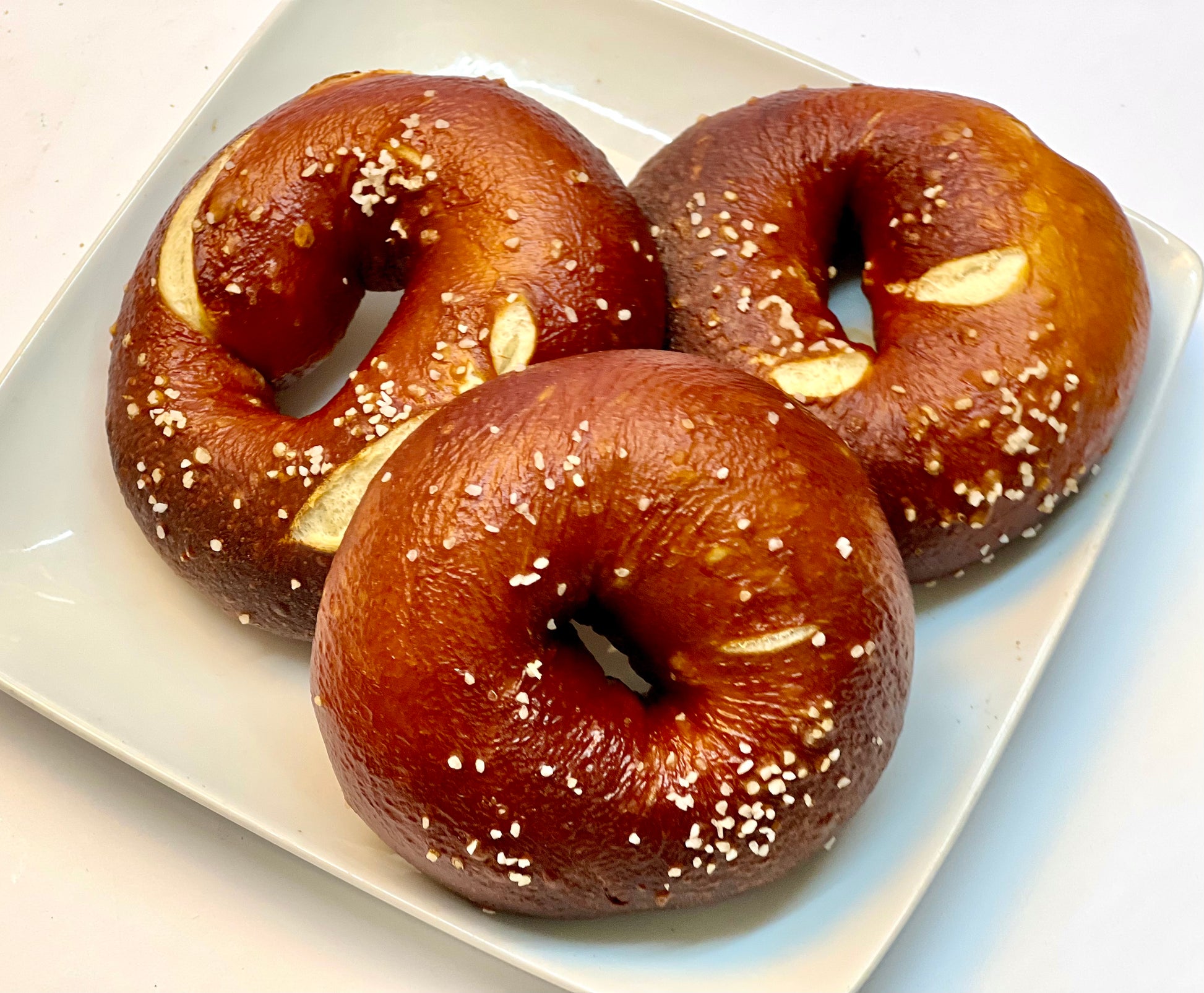Why settle for a regular bagel when you can elevate your gastronomic experience with a pretzel bagel! Pillowy soft and chewy on the inside, delightfully crispy crust on the outside, our pretzel bagels are perfect for sandwiches, toasting and enjoying with your favorite schmear, slicing into charcuterie crackers, making pretzel chips and more!